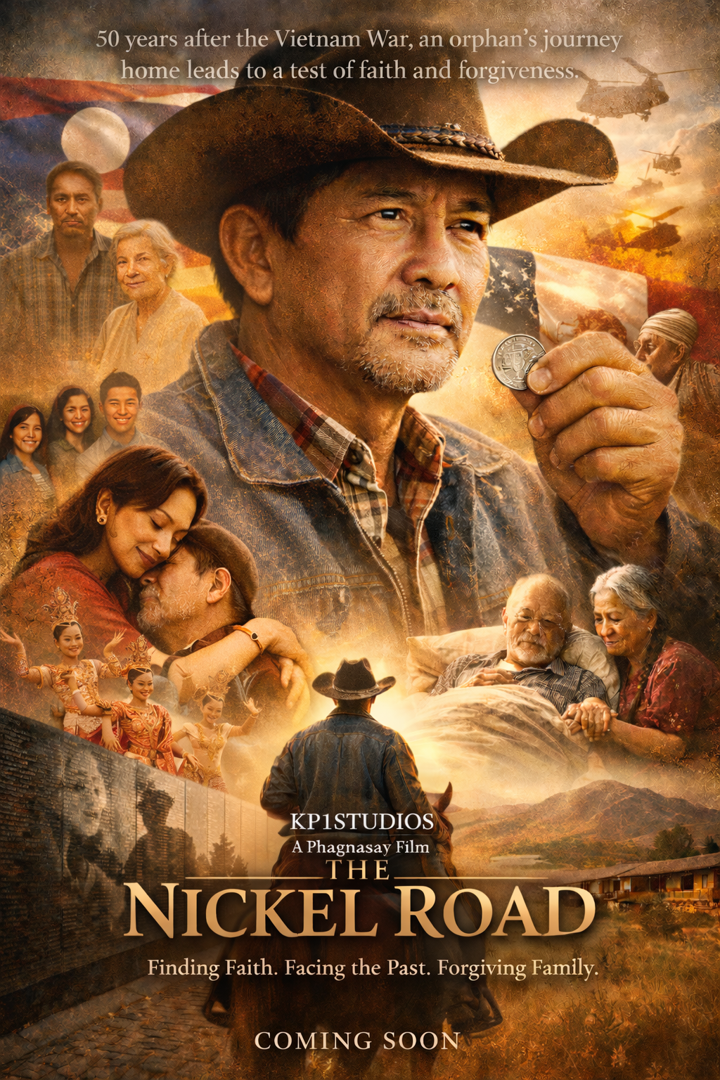 Fifty years after the Vietnam War, Noy — a Laotian-American rancher devoted to helping troubled youth — is forced to return to California’s Central Valley when he learns that the uncle who raised him is dying from a war-related illness. Raised as an orphan between cultures, faiths, and generations, Noy must confront painful memories of a harsh childhood, complicated family bonds, and the quiet sacrifices hidden beneath years of silence. As past and present collide through poetic flashbacks — from refugee camps in Laos to a life built on faith, love, and service in America — a simple nickel given to him during the war becomes a symbol of survival, forgiveness, and legacy. Through a journey of healing, Noy learns that faith is not about perfection, but about choosing grace, family, and purpose despite the scars we carry. THE NICKEL ROAD is a trilingual, faith-driven cultural drama blending Western Americana with Southeast Asian heritage — a story of identity, redemption, and the enduring power of home. LOCATION: Utah FORMAT: short film